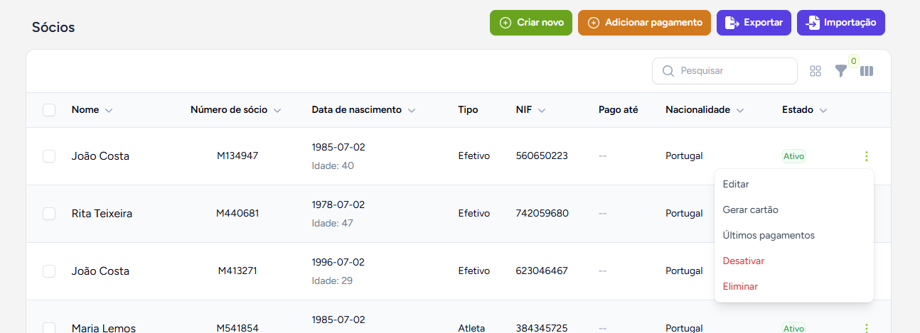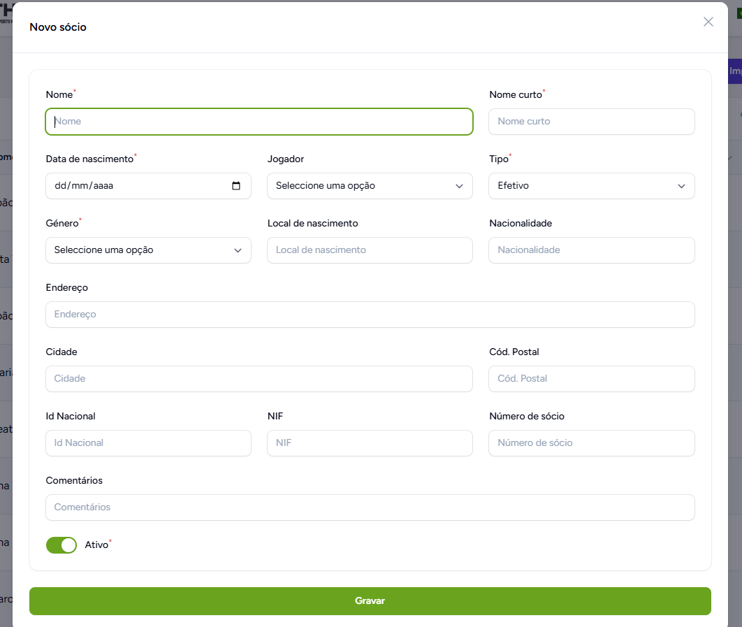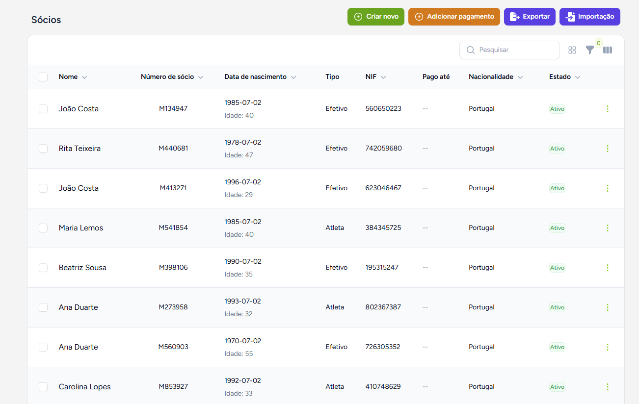 O módulo de Gestão de Sócios permite ao clube manter um registo organizado, completo e sempre atualizado dos seus sócios.
