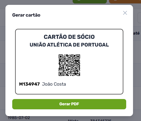 A plataforma Youth Pro no modulo de sócios permite gerar de forma automatica os cartões de sócio de acordo com os sócios registados. Basta clicar no botão "Gerar Cartão" disponivel nas ações em massa ou em cada registo de forma individual.